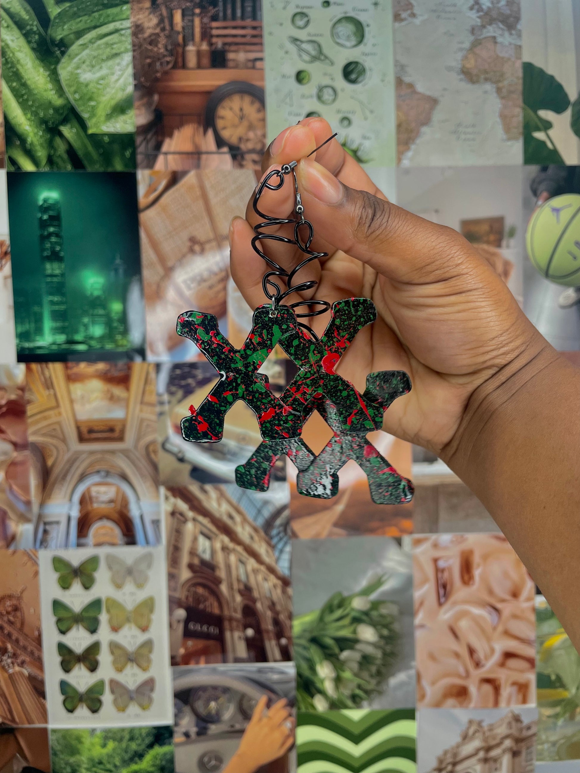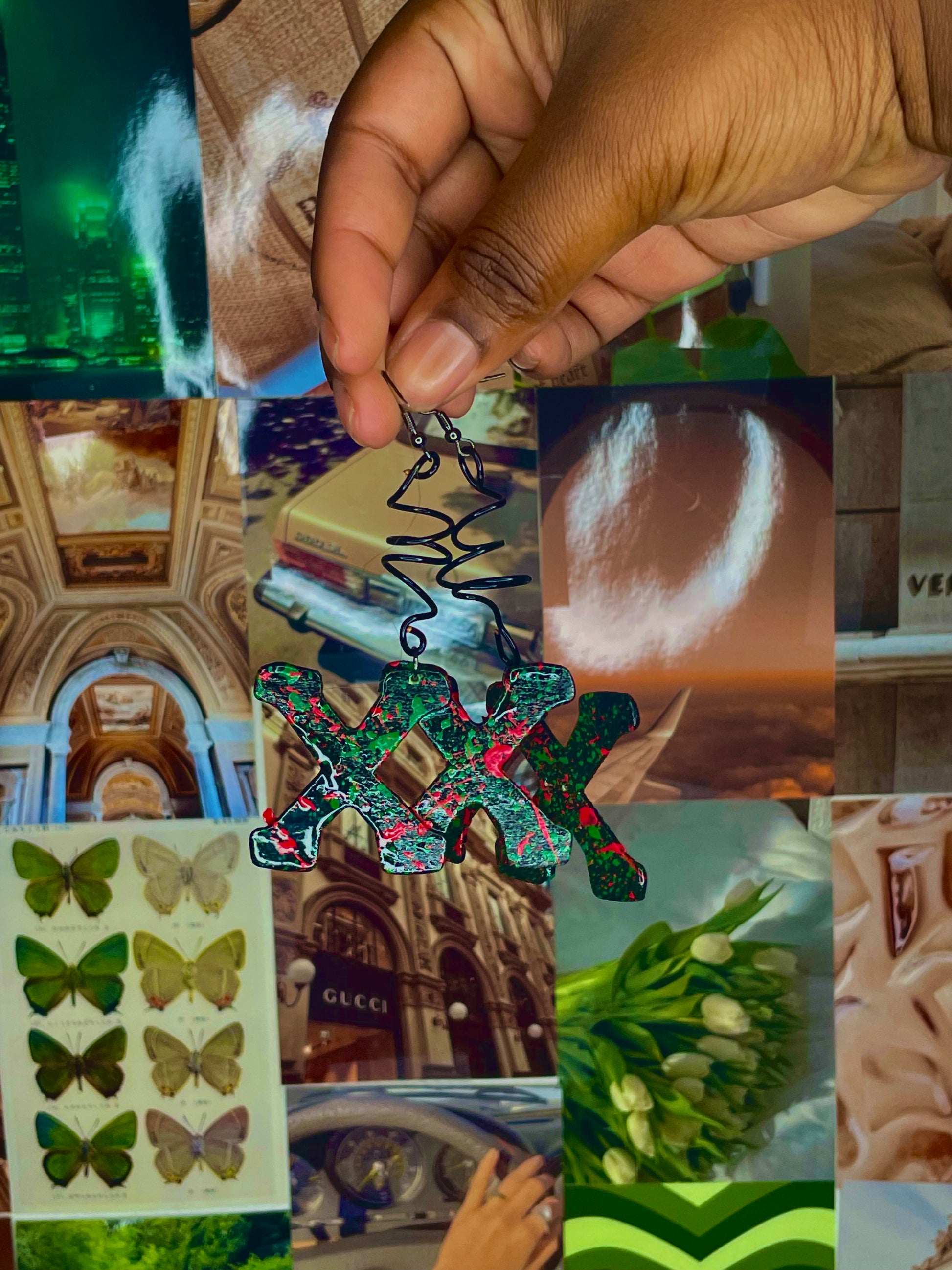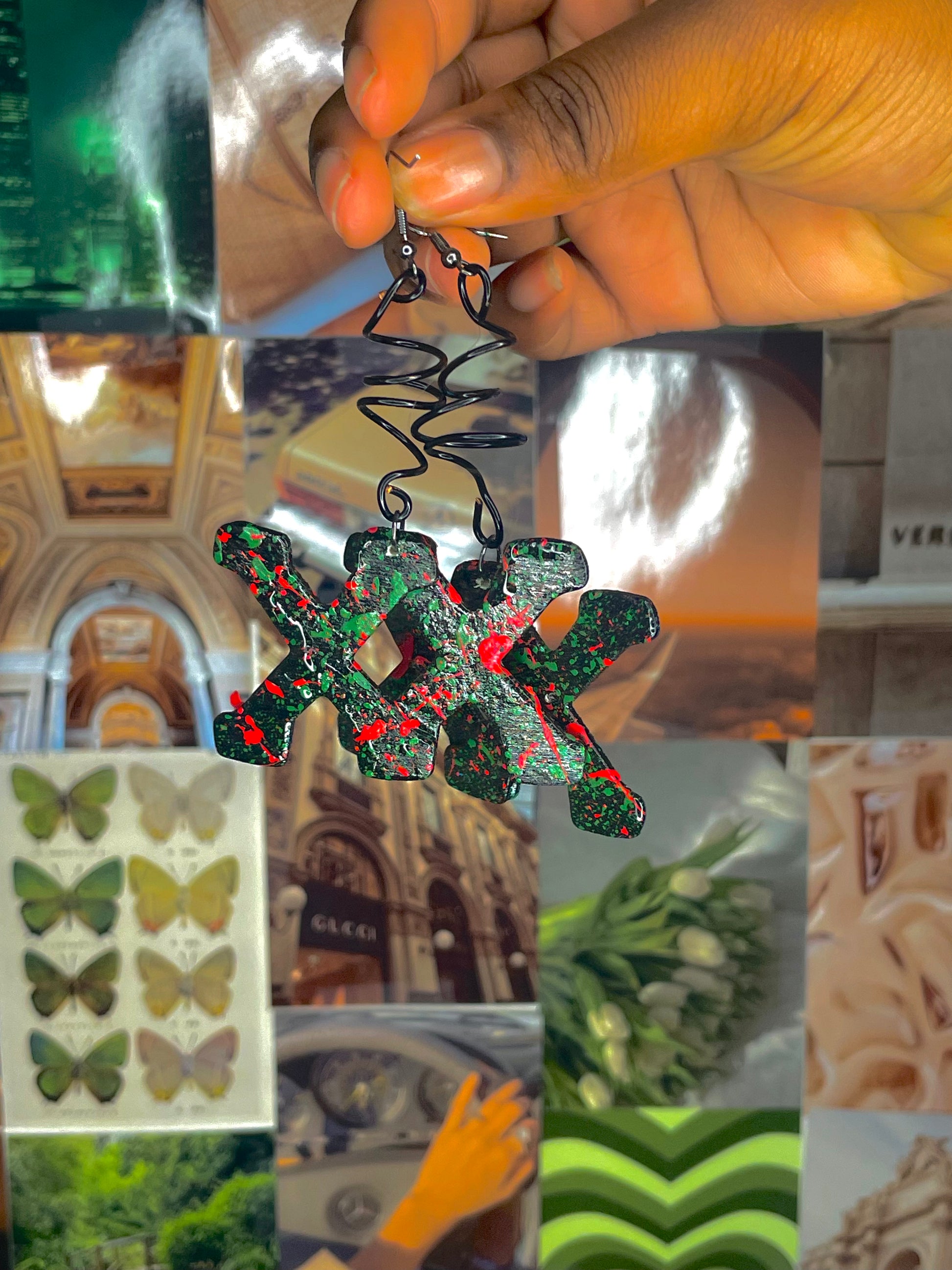 X Letter, Black, Green, Red, Splashes w/Black Metal Twirl